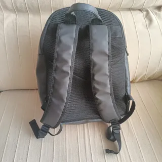 endo mochila técnica de la marca Gill en color negro y gris. Es una mochila de alta gama, muy diferente a las escolares básicas; el tejido es muy resistente y duradero. Características principales: Ergonómica: Tirantes ajustables y espalda acolchada para que no sufra la espalda. Organización: Bolsillo exterior de acceso rápido y redes laterales. Calidad: Cremalleras reforzadas y asa superior muy firme. Uso: Ideal para ir a entrenar, para el portátil o como equipaje de mano. Está bien cuidada y limpia. Se nota la calidad de los materiales nada más tocarla.