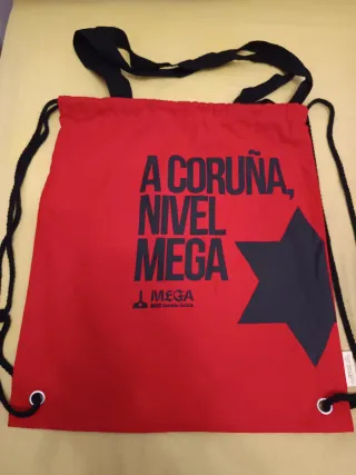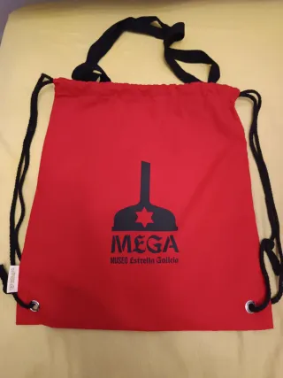 Práctica bolsa - mochila de Mega, Estrella Galicia, en color rojo y negro