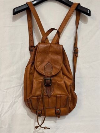 Mochila de piel en tono marrón. Diseño elegante y práctico. Hecha a mano - Material: Piel. - Color: Marrón.