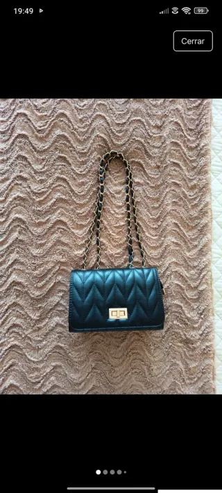 Elegante bolso de mano con un diseño moderno y un acabado texturizado. - Asa de cadena metálica dorada. - Cierre de solapa con broche. - Diseño compacto y versátil.