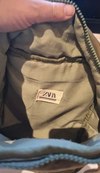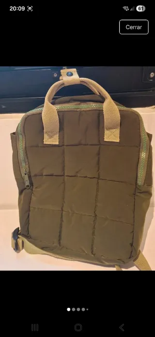 Bolso tipo mochila de Zara, con un diseño acolchado y moderno. - Color verde oliva. - Cierre de cremallera. - Asas superiores y tiras ajustables.