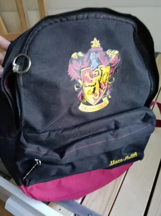 Mochila Harry Potter Griffindor en perfecto estado Ideal para estudiantes y fans de la saga. - Diseño principal en color negro con granates. Escudo de Griffindor en frontal. - Otros detalles de la casa como: tirador metálico con logo Harry Potter. Logo bordado en correas (ajustables). Interior en color granate con simbología de la saga.