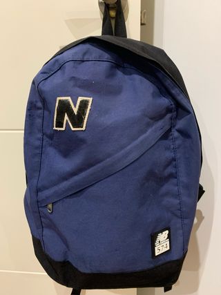 Mochila de la marca New Balance, modelo 574, en color azul. En muy buen estado.
