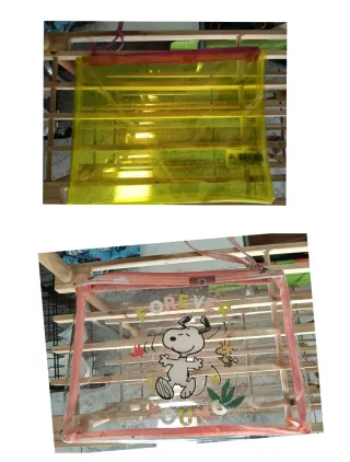 Neceser transparente con diseño de Snoopy y Woodstock. Neceser amarillo - Cierre de cremallera. 3 euros cada uno. 5 euros los dos