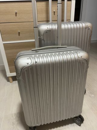 Conjunto de dos maletas de la marca Paco Martinez. - Color plateado. - Diseño rígido con ruedas.