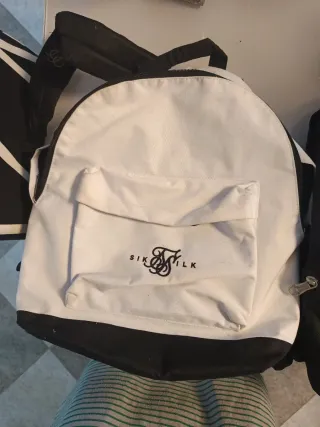 Mochila de la marca Sik Silk con un diseño moderno y práctico. - Combinación de colores blanco y negro. - Bolsillo frontal con el logo de la marca.