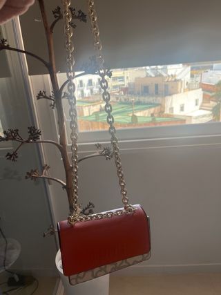 Bolso de la marca Tous con un diseño bicolor. - Parte superior en color naranja. - Parte inferior con estampado de la marca. - Cadena dorada para llevar al hombro o cruzado.
