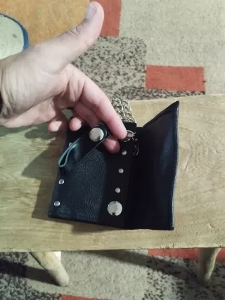 Billetera de cuero con el logo del grupo Kreator. - Diseño en color negro. - Placa metálica con el logo.