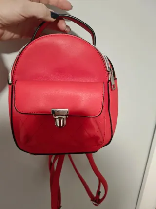 Mochila de estilo moderno con un llamativo color rojo. - Diseño acolchado con rombos. - Bolsillo frontal con cierre de broche. - Asa superior y correas ajustables.