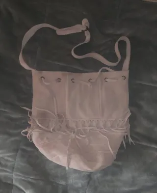 Bolso de hombro de ante con flecos y cordones. - Material: Ante - Color: Beige - Cierre con cordones - Adorno de flecos