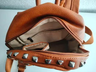 Preciosa mochila pequeña de la marca Parfois, en color beige. Es perfecta para el día a día. - Tiene un compartimento principal con cremallera. - Incluye un bolsillo frontal con cremallera. - Asa superior para llevarla en la mano. - Correas ajustables para llevarla a la espalda.