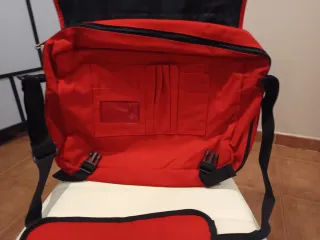 Bolso bandolera de color rojo de la marca Mistral. Es un accesorio práctico y con estilo. - Compartimento principal amplio. - Correa ajustable para mayor comodidad. - Bolsillo exterior con cremallera.