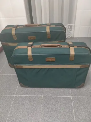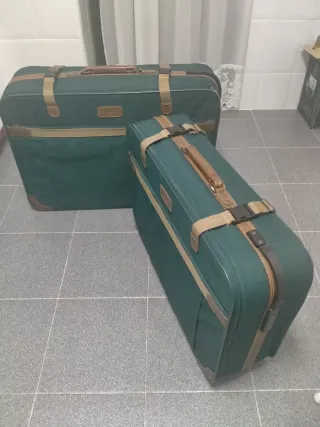 Se venden dos maletas de viaje en color verde con detalles en marrón. -Cabe una dentro de la otra para ahorrar espacio. Gran capacidad. Se venden juntas o por separado Maleta grande80x23x55cm aproximadamente, cuesta 25 euros. Maleta pequeña 76x21x50cm y cuesta 20 euros. Las dos disponen de un bolsillo exterior con cremallera y uno interior sin cremallera, tienen ruedas para poderlas desplazar más cómodamente agarrándolas de un mango lateral como puede apreciarse en las ultimas fotos, también podrían servir para usarlas de almacenaje de gran capacidad y tenerlas debajo de la cama.Mira mi perfil tengo un montón de cosas interesant