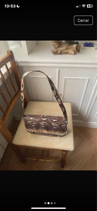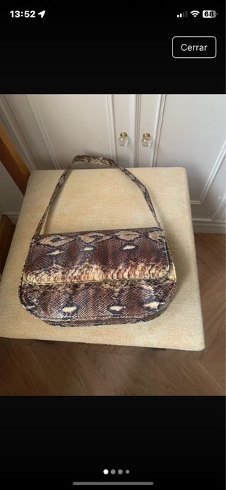 Bolso de piel con estampado de serpiente, en perfecto estado. envíos rápidos✅ + espejo de regalo🎁 posibilidad de oferta de mas productos similares anunciados en el perfil - Diseño elegante. - Cierre de solapa. - Asa larga para llevar al hombro.