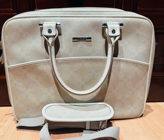 Maletín de la marca Tous en color beige. - Fabricado en cuero. - Diseño con monograma. - Incluye correa ajustable. - Compartimentos exteriores. - Asa de mano.