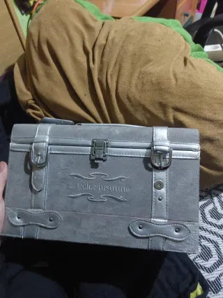 Elegante maletín de la marca The Color Institute. Algo manchado como se ve en las fotos por maquillaje - Diseño tipo neceser. - Cierre de clip metálico. - Acabado en material similar al ante.