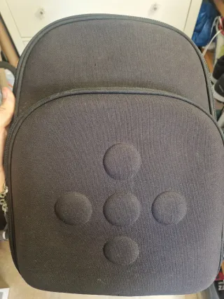 Mochila de tela con un diseño moderno y práctico.( no se la marca) - Color negro. - Detalle de cinco círculos en relieve en la parte frontal. - Cierre de cremallera.