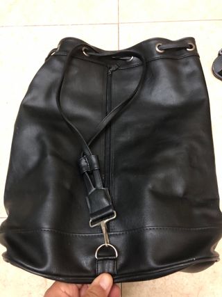 Bolso-mochila de cuero sintético. - Cierre principal con cremallera. - Bolsillo frontal con cremallera. - Asa superior. - Correas ajustables.