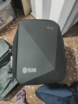 - Cerradura con clave - Compartimento especial para PC - Compartimento principal espacioso. - Logo de UCAM visible en la parte frontal. - Cierre de cremallera.
