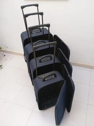 Conjunto de cuatro maletas de viaje de diferentes tamaños. Perfectas para organizar tu equipaje. - Incluye cuatro maletas + candado. - Diseño con ruedas y asa extensible. - Material textil resistente.