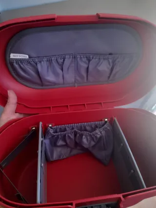 Maleta de mano con un diseño práctico y moderno. Ideal para llevar tus pertenencias de forma organizada. - Asa superior gris. - Cierre frontal plateado con detalles. - Material resistente.