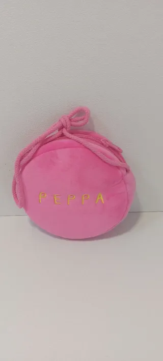Bolso redondo de peluche de Peppa Pig para niñas. - Diseño circular. - Cierre de cremallera - Adorable aplicación de Peppa Pig. - Correa de hombro. - Material suave y acolchado. Más modelos de bolsos y mochilas infantiles en mi armario. Hago lote y envío por Wallapop.