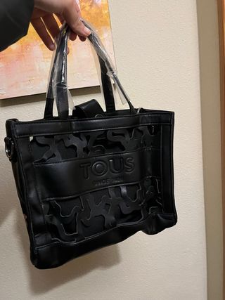 Bolso de mano Tous en color negro. Presenta un diseño moderno con detalles troquelados. - Logo de Tous en relieve. - Cierre superior. - Asa de mano y correa ajustable. -lleva para colgarlo al hombro