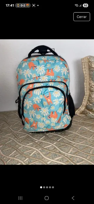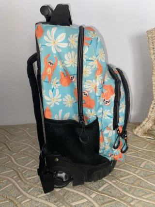 Mochila con un diseño vibrante y llamativo, perfecta para llevar tus pertenencias con estilo. - Ruedas para facilitar el transporte. - Asa extensible. - Compartimentos organizados. - En perfecto estado - Compartimentos muy grandes