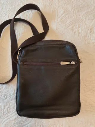 Bolso de hombre en polipiel de color marrón. Práctico y con un diseño moderno.Con muchos bolsillos internos y externos . - Material: Polipiel. - Correa ajustable para llevar al hombro o cruzado.