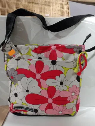 Bolso bandolera con un alegre estampado floral. - Diseño llamativo con flores en varios tonos. - Correa ajustable para mayor comodidad. - Etiqueta de la marca visible en la parte inferior.Nuevo 🏷 Por culpa de personas maliciosas🤬 (sí, incluso estafadores organizados que se ven por Wallapop, etc...), no acepto devoluciones🚫, para evitar malentendidos. Envío en 24/48 horas (de L a V)🚛 Precio no negociable 🤝⛔ Cualquier duda por mensaje privado ❓✉️
