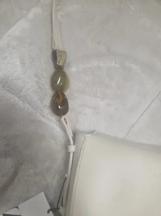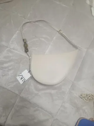 Bolso de mano de la marca Zara con un diseño moderno y elegante. - Correa ajustable con detalles de cuentas. - Cierre de cremallera. - Compartimento principal espacioso.