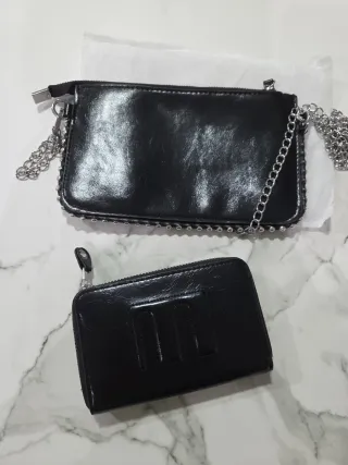Conjunto de bolso y monedero. - Bolso con tachuelas y cadena. - Monedero con detalle frontal. - El monedero de la,marca mango
