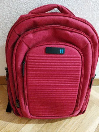 Mochila de color rojo con varios compartimentos para organizar tus pertenencias. Ideal para el día a día o para viajes cortos. - Tres departamentos principales con cierre de cremallera. - Bolsillo frontal adicional. - Asa superior para colgar. - Correas ajustables para los hombros.