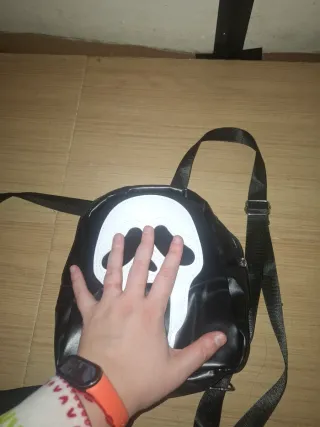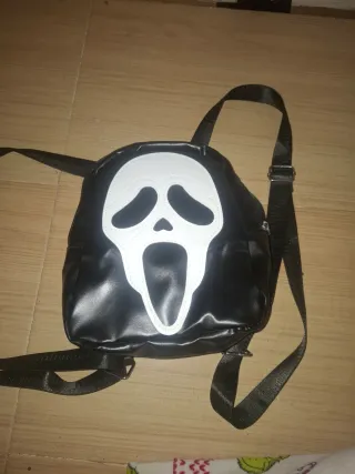 Mochila negra con diseño inspirado en la máscara de Scream. Es un accesorio llamativo y original. - Cierre de cremallera. - Correas ajustables. - Totalmente nueva sin uso. Perfecta para uso diario o como regalo. Entrega En Mano.