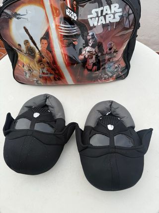 Bolsa de deporte y zapatillas con temática de Star Wars. - Diseño inspirado en personajes de la saga. - Mochila con estampado. - Zapatillas tipo pantufla ( grandes ).