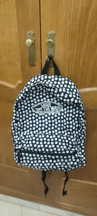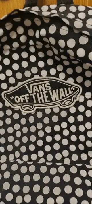 Mochila con un divertido estampado de lunares. - Diseño de lunares blancos sobre fondo negro. - Logo de Vans Off The Wall en el frontal.