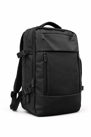 Mochila negra con mucho espacio de almacenamiento. - Compartimentos múltiples para organizar tus pertenencias. - Diseño moderno y funcional. - Tirantes acolchados para mayor comodidad.