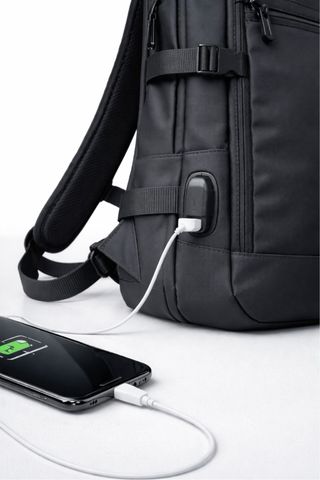 Mochila práctica y funcional con puerto de carga USB integrado y protección portátil - Diseño impermeable para proteger tus pertenencias. - Compartimento principal espacioso. - Bolsillos exteriores adicionales para acceso rápido.