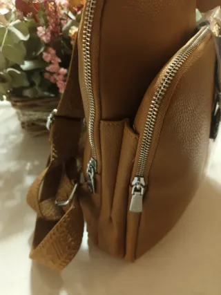 Mochila de cuero con un diseño elegante. - Material: Cuero - Color: Marrón - Cierre de cremallera - Correa ajustable