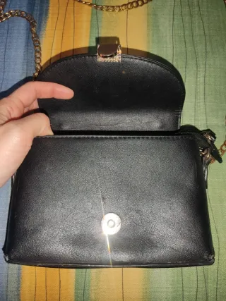 Bolso negro con cadena dorada, ideal para eventos o looks de noche. Clásico y combinable.