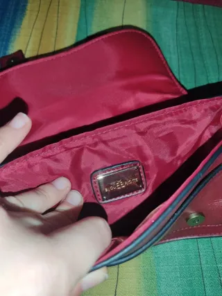 Bolso granate con doble hebilla frontal, diseño elegante y versátil. Buen tamaño para el día a día.