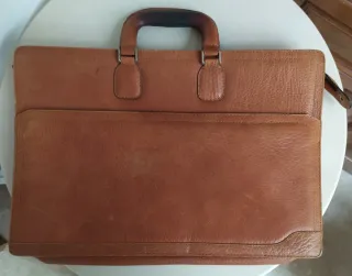 Antiguo maletín en piel de la Confederación Española de Cajas de Ahorros, tiene unas medidas de 42x28 cm. Presenta los desperfectos que muestran las fotos, un poco descocido donde termina la cremallera y en el fondo descocido en forro. Maletín antiguo de piel de la Confederación Española. - Color marrón. - Diseño clásico y elegante.