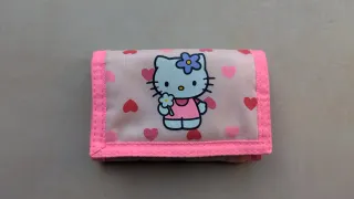 Monedero con un adorable diseño de Hello Kitty rodeada de corazones. - Estampado de corazones en tonos rosas. - Ribete y costuras en color rosa. - Cierre de solapa. - Cremallera exterior - Compartimento triple en el interior