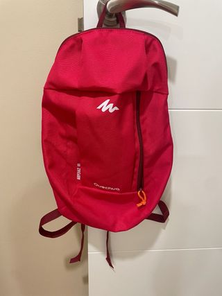 Mochila Quechua Arpenaz de color rojo, ideal para tus actividades al aire libre. Es una mochila pequeña y ligera, perfecta para llevar lo esencial. - Capacidad: 10 litros - Diseño compacto y funcional - Asa superior para facilitar el transporte