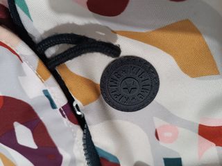Mochila escolar con un diseño llamativo. - Estampado de la marca Kappa. - Medidas: 41 alto x 32 ancho x 10 cm lateral, perfecta para llevar libros, libretas y todo el material escolar. - Bolsillo frontal con cremallera. - Asa de mano. - Tirantes anchos, ergonómicos y acolchados que se adaptan a la espalda. - En buen estado. La parte que peor está son esos pequeños desconchados en la parte interna que se ven en la última foto.