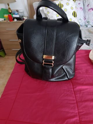 Bolso tipo mochila de polipiel. - Cierre principal con cremallera. - Bolsillo frontal con cremallera. - Asa superior. - Correas ajustables.