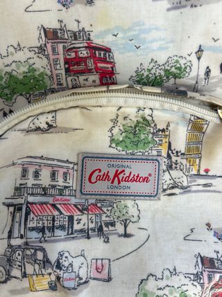 Mochila con un divertido estampado de escenas urbanas. - Diseño con autobuses rojos y edificios. - Bolsillo frontal con cremallera. - Correas ajustables para los hombros. Apta uso escolar