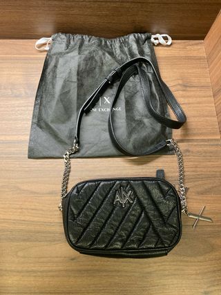 Bolso bandolera de Armani Exchange. - Diseño acolchado. - Logo metálico en la parte frontal. - Correa ajustable. - Incluye funda guardapolvo y bolsa. - En perfecto estado, nunca ha sido usado. - 11 cm de Alto, 21 cm de Ancho y 5 cm de profundidad.