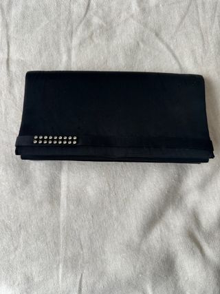 Elegante clutch negro, perfecto para eventos y fiestas. Su diseño combina sofisticación con un toque de brillo. - Adornado con una fila de pedrería. - Cierre seguro. - Material suave al tacto.