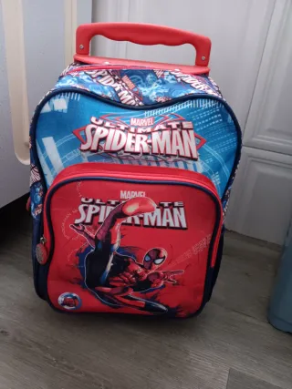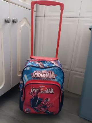 Mochila con diseño de Spiderman de Marvel, ideal para niños. Cuenta con ruedas para facilitar su transporte. - Personaje: Spiderman. - Licencia: Marvel. - Color principal: Azul y rojo.